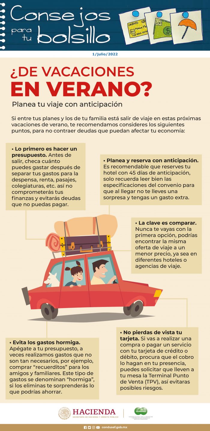 Si entre tus planes y los de tu familia esta de salir de viaje en estas próximas vacaciones de verano, te recomendamos que consideres los siguientes puntos, para no contraer deudas que puedan afectar tu economía: